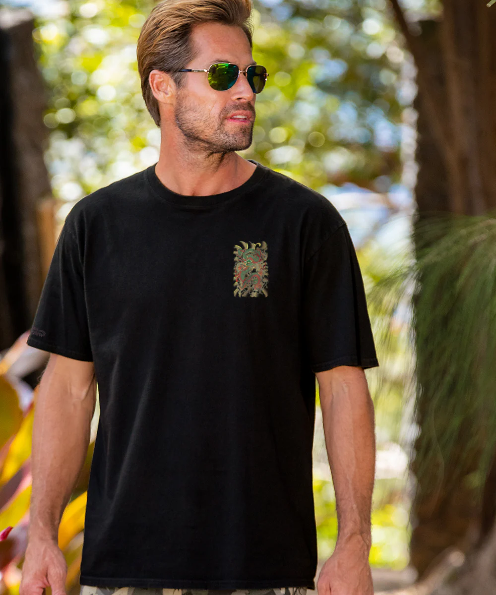 Asian-inspired artwork brings power and grace to a mystical representation of this dramatic dragon. Coupled with the bad-ass black material, this tee has a fashionable fury that matches your inner fire. Made from 100% cotton that is ring-spun, then combed to remove impurities, this fabric is luxuriously soft and lightweight yet incredibly strong. We only use environmentally friendly, water-based inks that penetrate the material's fiber resulting in more vibrant colors, softer feel and artwork that doesn't crack or peel. Plus, it is proudly printed in the United States for quality you can see and designs that stand the test of time.