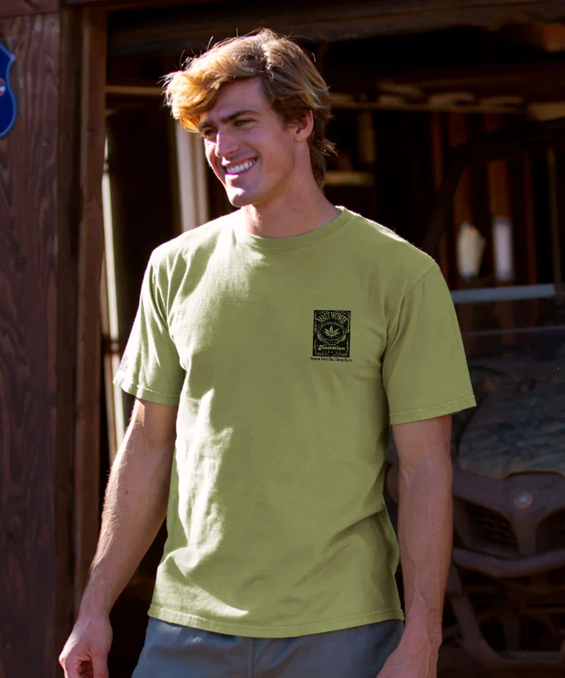 Bold and a little cheeky, this island classic brings vintage stash-label vibes with a Hawaiian twist. Pure good times - grown local, shared with aloha. Made using our exclusive specialty dyeing process that uses real industrial hemp and featuring 100% combed ring-spun cotton, this t-shirt has 50+ SPF protection to keep you feeling cool, calm and protected all year long. We only use environmentally friendly water-based inks that penetrate the material's fiber resulting in more vibrant colors, softer feel and artwork that doesn't crack or peel. Plus, it is proudly printed in the United States for quality you can see and designs that stand the test of time.