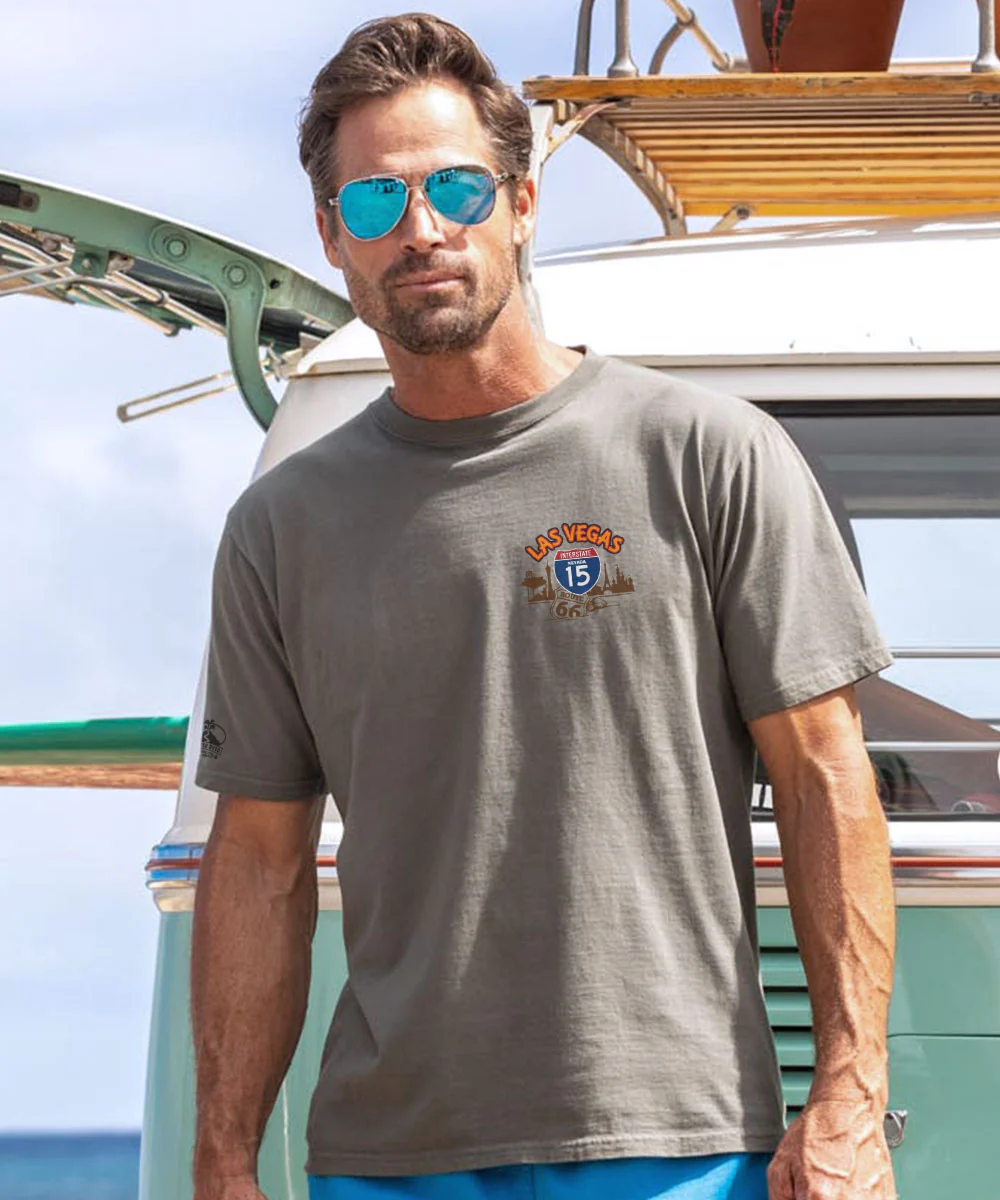 You'll never get lost in Las Vegas when you're wearing this shirt. Of course, if you lose your shirt at the tables then you're on your own. Made using our exclusive specialty dyeing process that uses real volcanic ash and featuring 100% combed ring-spun cotton, this t-shirt has 50+ SPF protection to keep you feeling cool, calm and protected all year long. We only use environmentally friendly, water-based inks that penetrate the material's fiber resulting in more vibrant colors, softer feel and artwork that doesn't crack or peel. Plus, it is proudly printed in the United States for quality you can see and designs that stand the test of time.