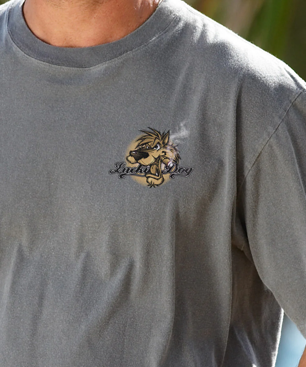 Cool under pressure and paws deep in winnings, this lucky pup’s got the Vegas magic. Surrounded by chips, cards, and a winning grin, he’s living proof that fortune really does favor the bold (and the furry). Made using our exclusive specialty dying process that uses real volcanic ash and featuring 100% combed ring-spun cotton, this t-shirt has 50+ SPF protection to keep you feeling cool, calm and protected all year long. We only use environmentally friendly, water-based inks that penetrate the material's fiber resulting in more vibrant colors, softer feel and artwork that doesn't crack or peel. Plus, it is proudly printed in the United States for quality you can see and designs that stand the test of time.