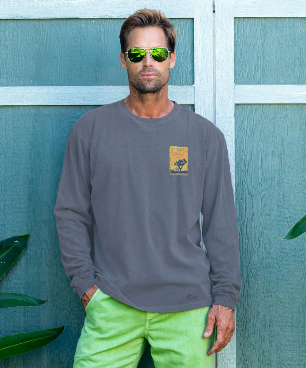 Baked in sun, brushed with desert wind, and rooted in stillness - this wild silhouette rises like a monument to the magic of the Mojave. A golden hour snapshot where sky meets soul and time slows to a hush. Made using our exclusive specialty volcanic ash dying process and featuring 100% combed ring-spun cotton, this t-shirt has 50+ SPF protection to keep you feeling cool, calm and protected all year long. We only use environmentally friendly, water-based inks that penetrate the material's fiber resulting in more vibrant colors, softer feel and artwork that doesn't crack or peel. Plus, it is proudly printed in the United States for quality you can see and designs that stand the test of time.