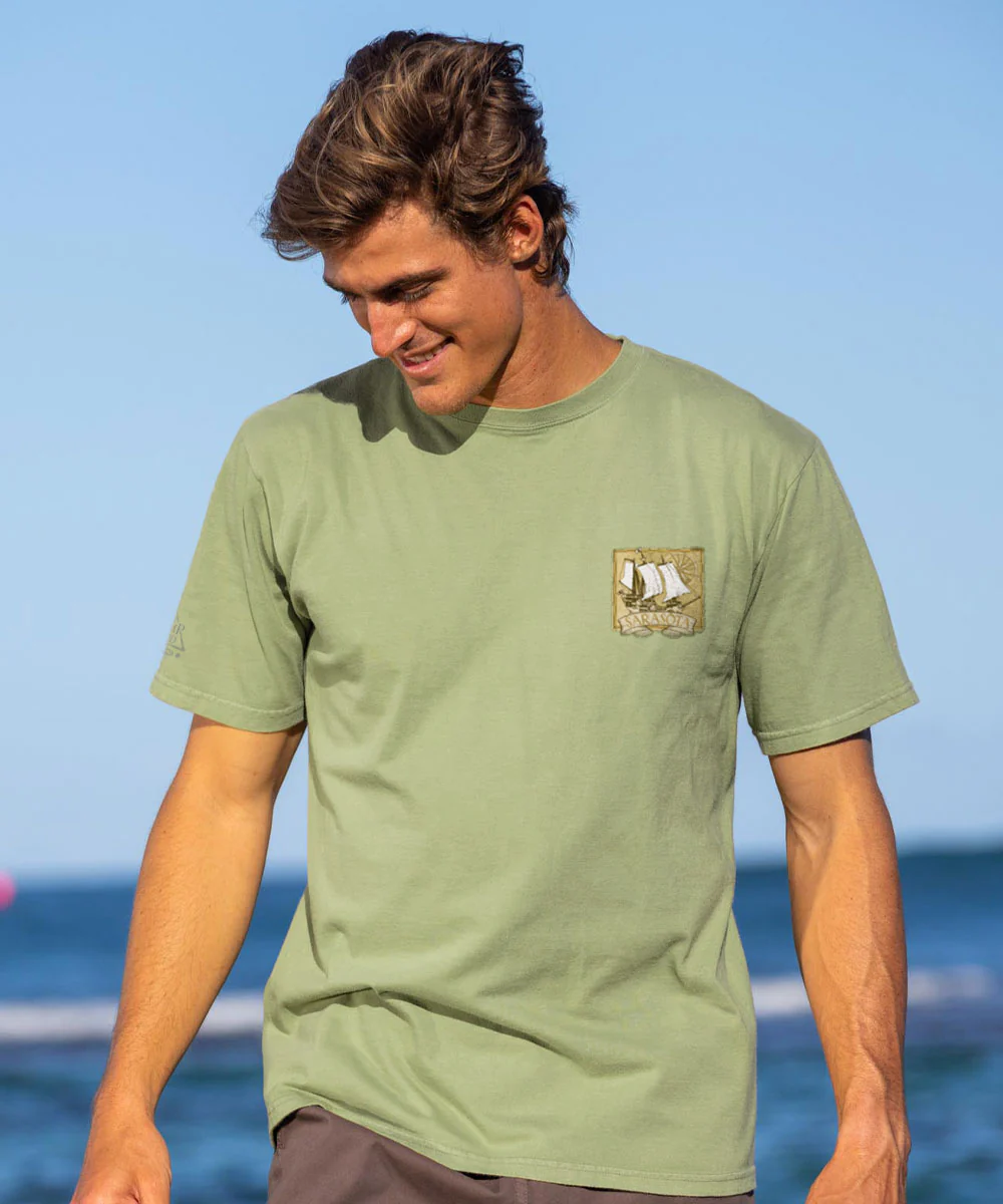 Faded like an old treasure map and rich with coastal charm, this vintage-style scene calls to the Gulf breeze and gentle tides of Sarasota. A timeless snapshot of sun-soaked shores, winding inlets, and seafaring spirit. Made using our exclusive specialty dyeing process that uses real industrial hemp and featuring 100% combed ring-spun cotton, this t-shirt has 50+ SPF protection to keep you feeling cool, calm and protected all year long. We only use environmentally friendly water-based inks that penetrate the material's fiber resulting in more vibrant colors, softer feel and artwork that doesn't crack or peel. Plus, it is proudly printed in the United States for quality you can see and designs that stand the test of time.