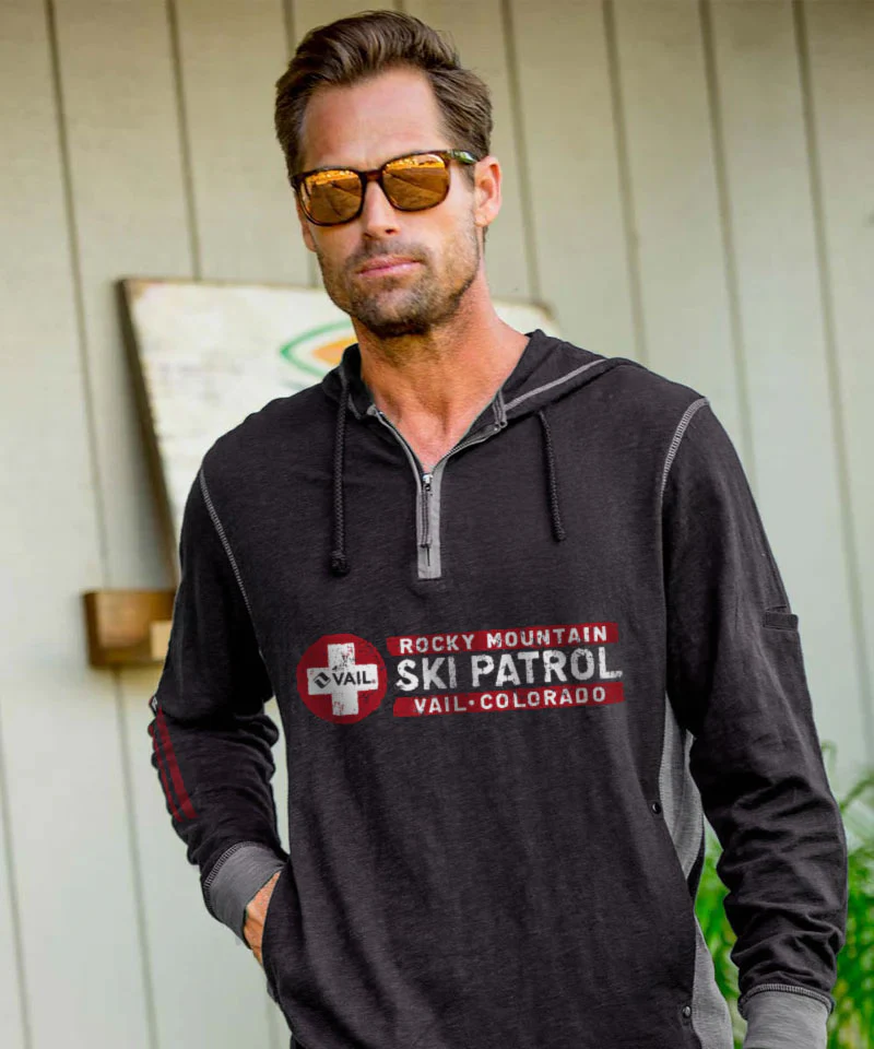 Built for the bold and ready for the mountain’s call, this badge of courage honors those who keep the slopes safe. Snow, speed, and first tracks - Vail’s finest have your back. Surfing on a longboard is easy, striking and relaxed. We've taken that feel and put it into this cool and comfortable hooded T. It's lightweight and effortless to wear and the contrast zipper and ribbing combine with the modern fit for eye catching style when you aren't catching waves. Plus, we print these tops in the United States using eco-friendly, water-based inks for more vibrant colors, a softer feel and artwork that stands the test of time.
